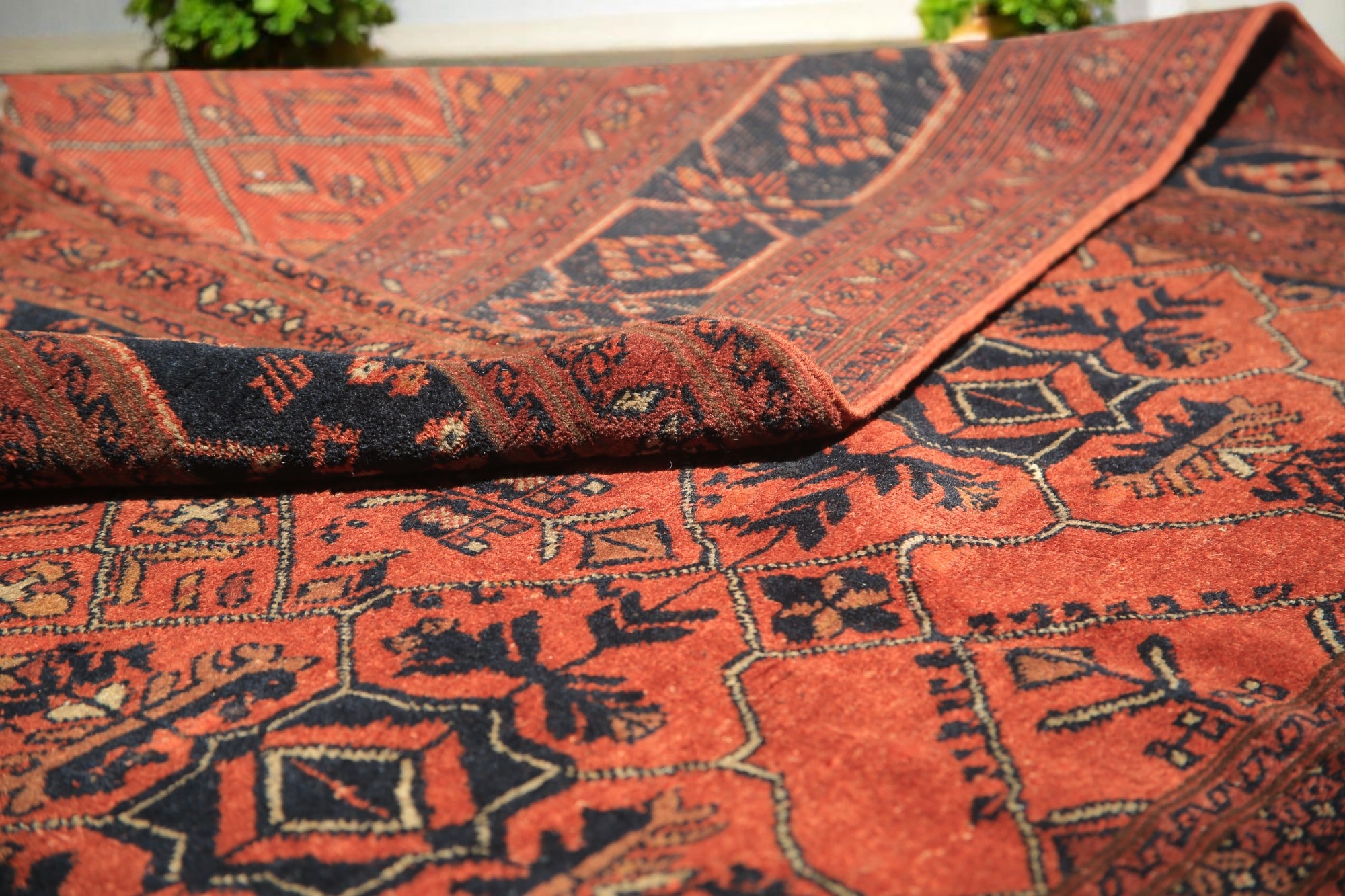 Vintage Afghan Baluch Tribal Rug – Deep Rust & Indigo (5.5’ x 3.5’)